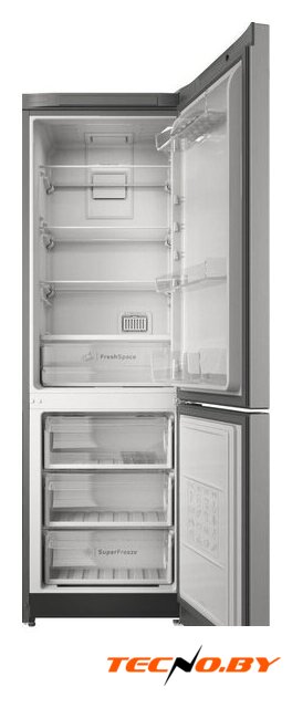 Indesit ITS 5180 XB заботится о вашем удобстве и экономии. Он оборудован системой полного No Frost, что избавляет вас от необходимости размораживания. Класс энергоэффективности A и годовой расход электроэнергии в 365 кВт·ч обеспечивают эффективное потребление энергии, не перегружая ваш бюджет. В случае отключения электроэнергии температура внутри сохраняется до 14 часов!