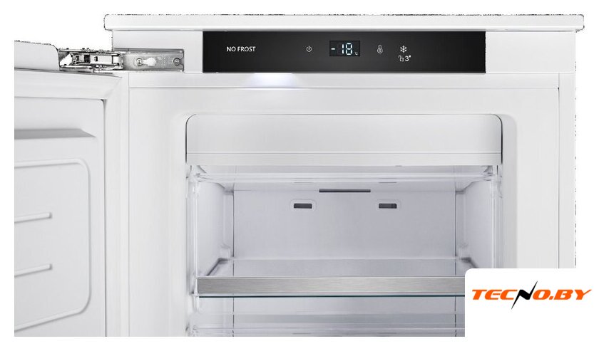 встраиваемый, без No Frost, электронное управление, класс A+, полезный объём: 111 л (95 + 16 л), перенавешиваемые двери, лоток для яиц, 59.6x55x81.8 см, белый