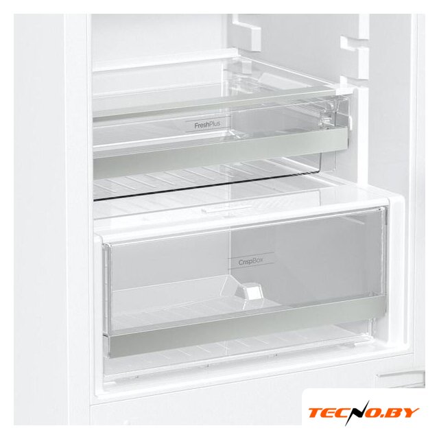 встраиваемый, скользящие направляющие, без No Frost, электронное управление, полезный объём: 271 л (198 + 73 л), перенавешиваемые двери, лоток для яиц, 54x54.9x177.2 см, белый