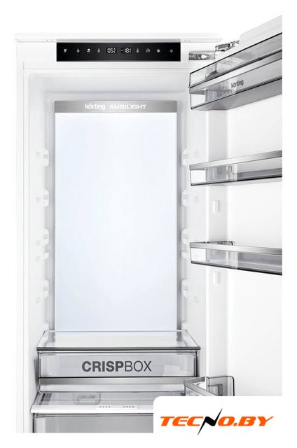 встраиваемый, плоские шарниры, без No Frost, электронное управление, полезный объём: 272 л (209 + 63 л), перенавешиваемые двери, лоток для яиц, 55.8x54.5x177.2 см, белый