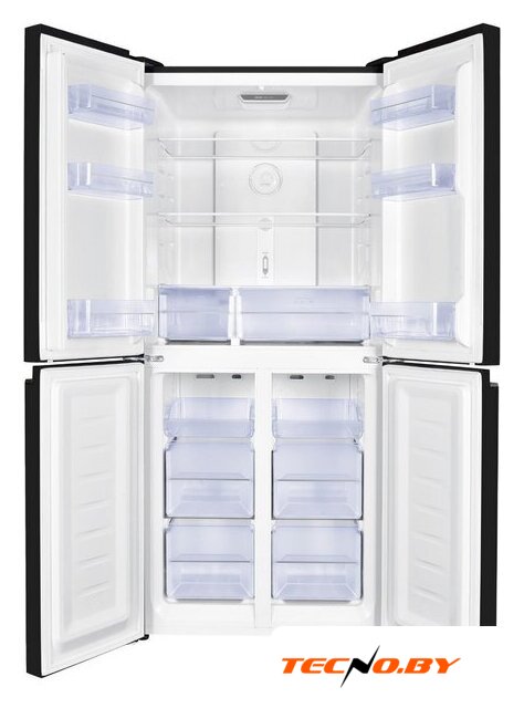отдельностоящий, полный No Frost, электронное управление, класс A+, полезный объём: 466 л (283 + 183 л), инверторный компрессор, лоток для яиц, отделка: стекло, 91x60x183.6 см, белый