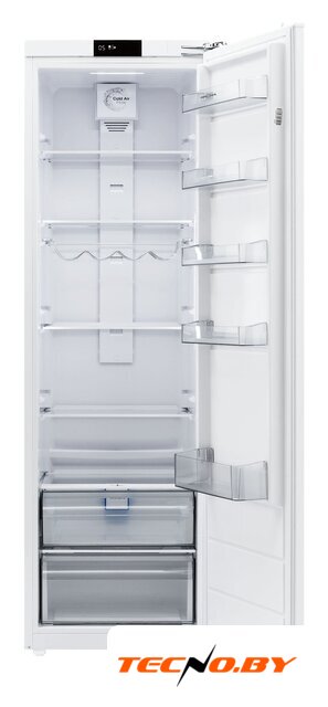 встраиваемый, без No Frost, электронное управление, класс A+, полезный объём: 270 л (195 + 75 л), инверторный компрессор, перенавешиваемые двери, лоток для яиц, 54x54.5x177.5 см, белый