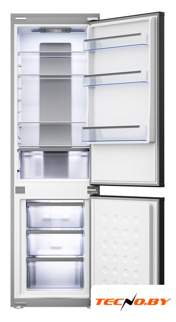 встраиваемый, жесткое, полный No Frost, сенсорное управление, класс A+, полезный объём: 243 л (175 + 68 л), зона свежести, перенавешиваемые двери, автодоводчик дверей, лоток для яиц, 54x54.5x177.2 см, белый
