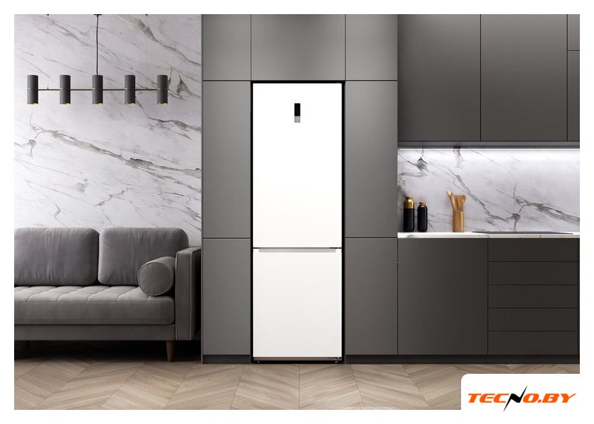 отдельностоящий, полный No Frost, электронное управление, класс A+, полезный объём: 317 л (223 + 94 л), перенавешиваемые двери, лоток для яиц, отделка: стекло, 59.5x63.5x185 см, белый