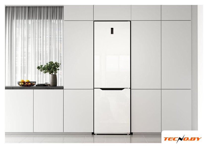 Обладатель стеклянных полок, холодильник обеспечивает надежность и стиль. Полезный объем составляет внушительные 456 л: из них 314 л отведено под холодильную камеру, а 142 л — под морозильную. Двери, которые можно перенавешивать, и встроенные ручки добавляют удобства в использовании.