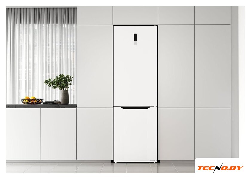 отдельностоящий, полный No Frost, электронное управление, класс A+, полезный объём: 322 л (239 + 83 л), инверторный компрессор, перенавешиваемые двери, нулевой зазор, складная полка, лоток для яиц, 60x62x198 см, белый