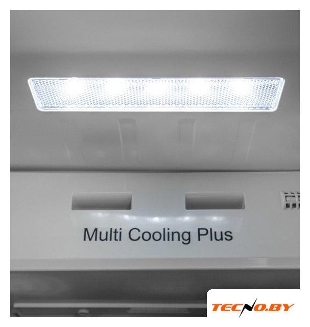 Внутреннее пространство холодильной камеры распределено на 5 стеклянных полок и 3 дверных балкона. Для фруктов и овощей предусмотрен специальный ящик, а для яиц – отдельный лоток. Морозильная камера имеет 6 отделений и дополняется тремя дверными балконами.