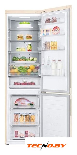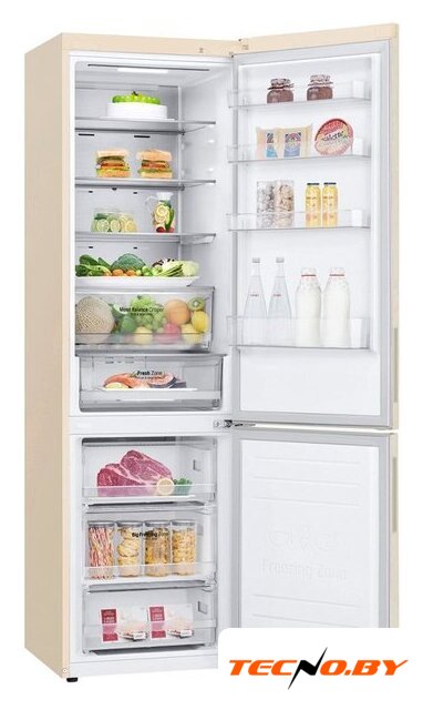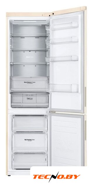 отдельностоящий, полный No Frost, электронное управление, класс A+, полезный объём: 351 л (257 + 94 л), перенавешиваемые двери, полка для вина, лоток для яиц, отделка: стекло, 59.5x63.5x200 см, бежевый