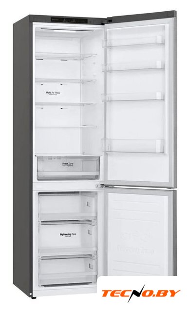 отдельностоящий, полный No Frost, электронное управление, класс A+, полезный объём: 322 л (239 + 83 л), инверторный компрессор, перенавешиваемые двери, нулевой зазор, складная полка, лоток для яиц, 60x62x198 см, темная сталь