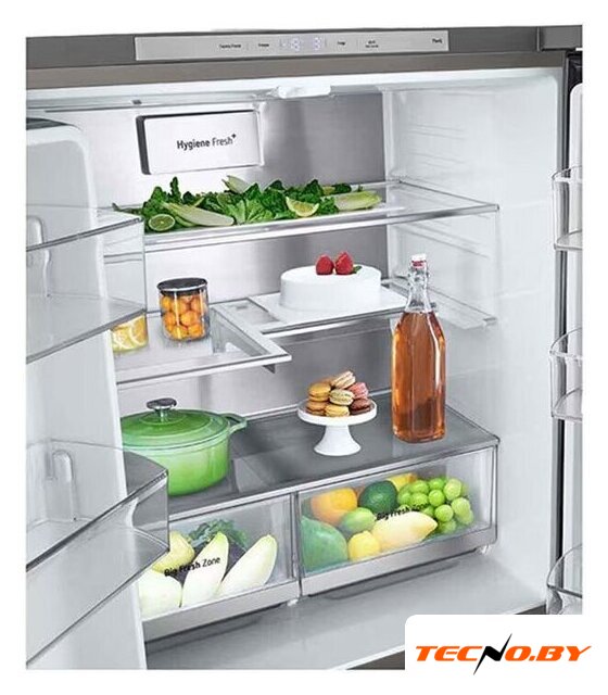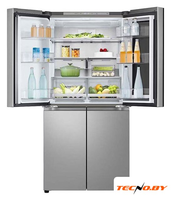 отдельностоящий, полный No Frost, электронное управление, класс A+, полезный объём: 647 л (414 + 233 л), инверторный компрессор, лоток для яиц, 91.3x73.5x179 см, нержавеющая сталь