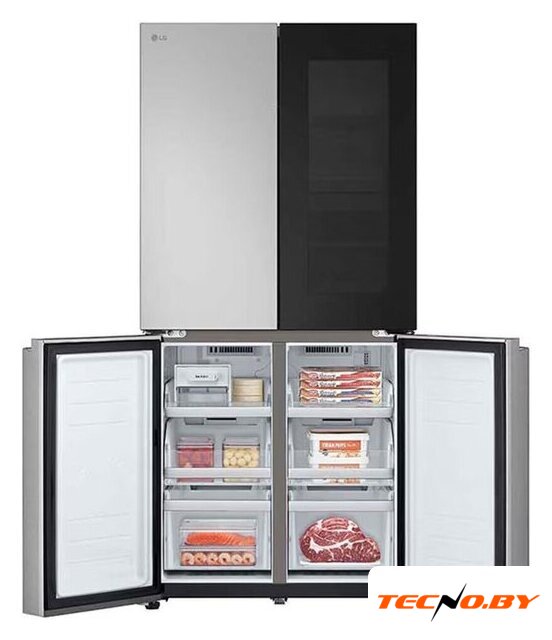 отдельностоящий, полный No Frost, сенсорное управление, класс A+, полезный объём: 606 л (365 + 241 л), инверторный компрессор, 96x63.5x191.2 см, черный/нержавеющая сталь