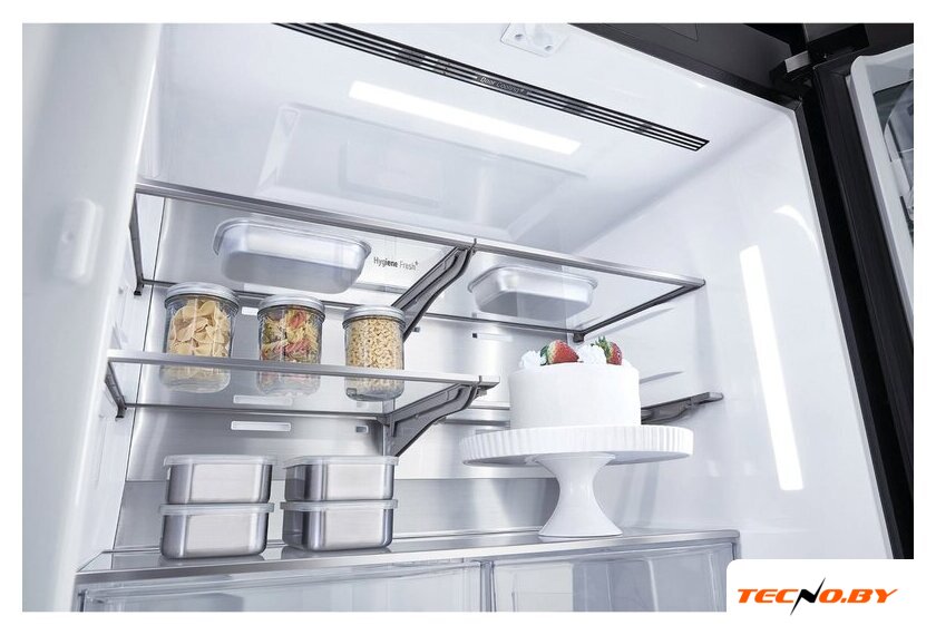 | Прочие оригинальные функции | Холодильник предусматривает наличие затемняющего стекла на двери отделения Door-in-door. Это отделение расположено в двери холодильника и позволяет уменьшить потери холодного воздуха в основном отделении благодаря тому, что пользователю придется меньше открывать его. Door-in-door предназначено для хранения йогуртов, масла, молока и напитков. |