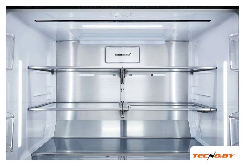 отдельностоящий, полный No Frost, сенсорное управление, класс A+, полезный объём: 527 л (382 + 145 л), инверторный компрессор, зона свежести, подсветка корпуса, складная полка, лоток для яиц, отделка: стекло, 91.4x68x186 см, нержавеющая сталь