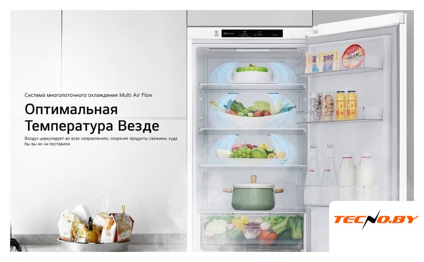 Придайте своей кухне стильный и современный вид с холодильником LG DoorCooling+ GC-B509MQWM. Этот элегантный белый холодильник объемом 419 литров идеально подходит для хранения больших объемов продуктов. С четырьмя стеклянными полками и одноярусным ящиком для фруктов и овощей, вы сможете с легкостью организовать пространство внутренней камеры. Морозильная камера с тремя отделениями, расположенная снизу, добавляет практичности, а перенавешиваемые двери делают холодильник удобным для любого интерьера.