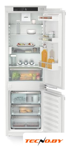 встраиваемый, плоские шарниры, без No Frost, электронное управление, полезный объём: 272 л (209 + 63 л), перенавешиваемые двери, лоток для яиц, 55.8x54.5x177.2 см, белый