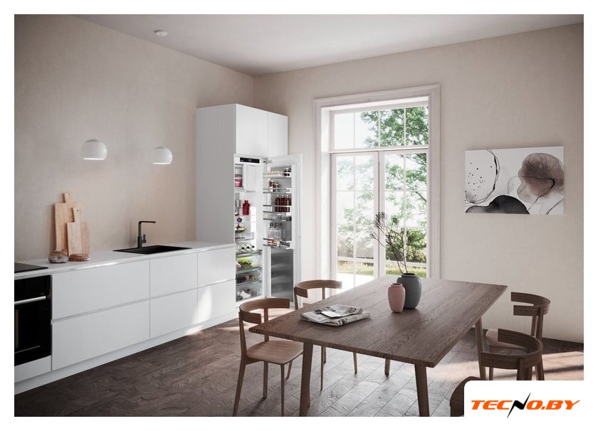 встраиваемый, жесткое, No Frost (морозильная камера), сенсорное управление, класс A++, полезный объём: 241 л (192 + 49 л), перенавешиваемые двери, автодоводчик дверей, складная полка, полка для вина, лоток для яиц, 55.9x54.6x177 см, белый