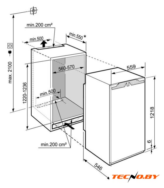 Идеальный выбор для небольших пространств благодаря своим размерам: ширина — 55.9 см, глубина — 54.6 см, высота — 121.8 см. Легкий вес в 39.9 кг облегчает монтаж, а размеры ниши для встраивания обеспечивают простоту интеграции в любую кухню.