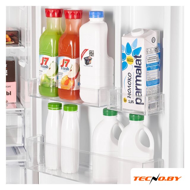 Холодильник MAUNFELD предлагает впечатляющий общий объем в 377 литров, из которых 257 литров приходятся на полезный объем холодильной камеры и 94 литра — на морозильную. Модель оборудована встроенными ручками и перенавешиваемыми дверями, что делает ее крайне удобной и гибкой в использовании. Четыре стеклянные полки позволяют легко организовать хранение продуктов, а два ящика для овощей и фруктов с возможностью регулировки влажности добавляют гибкость.