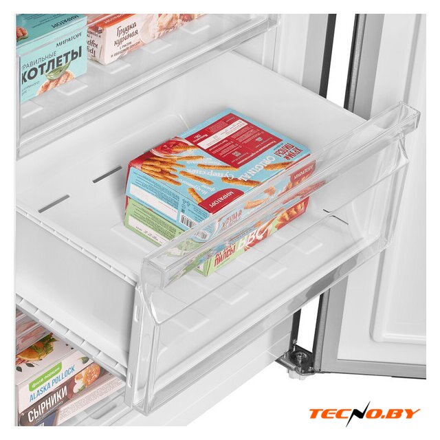 отдельностоящий, полный No Frost, электронное управление, класс A+, полезный объём: 465 л (321 + 144 л), лоток для яиц, 91.1x63.6x183 см, синий