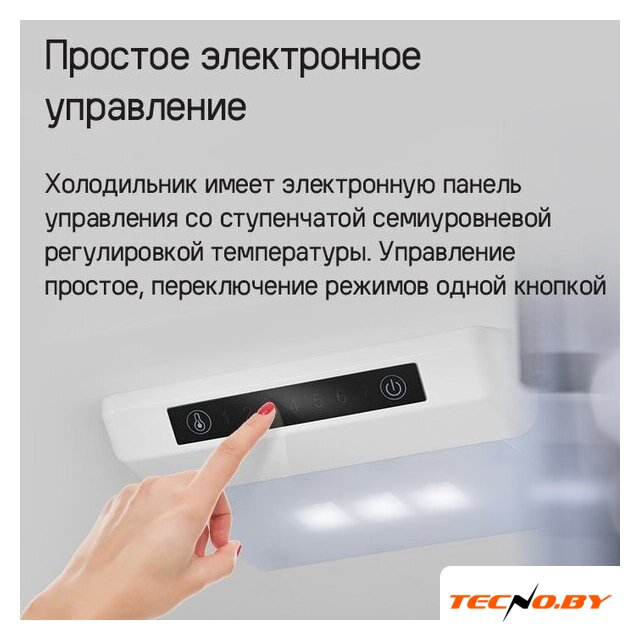 Холодильник обладает электронным управлением, расположенным внутри, для большего удобства. Хотя он не оснащен дисплеем и индикаторами температуры, его элегантный и интуитивно понятный интерфейс сохраняет простоту и эффективность.