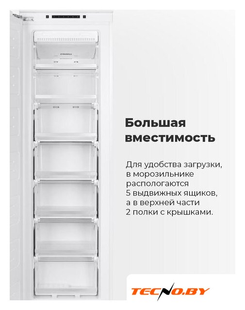 Благодаря системе No Frost, вам не нужно беспокоиться о размораживании – продукты всегда будут свежими, а наледь не станет проблемой. Морозильник имеет класс энергоэффективности A+, обеспечивая оптимальную работу при низком уровне потребления электроэнергии с годовыми затратами всего 235 кВт·ч. К тому же, даже при высокой производительности уровень шума составляет всего 41 дБ.