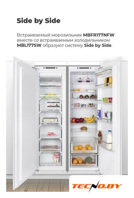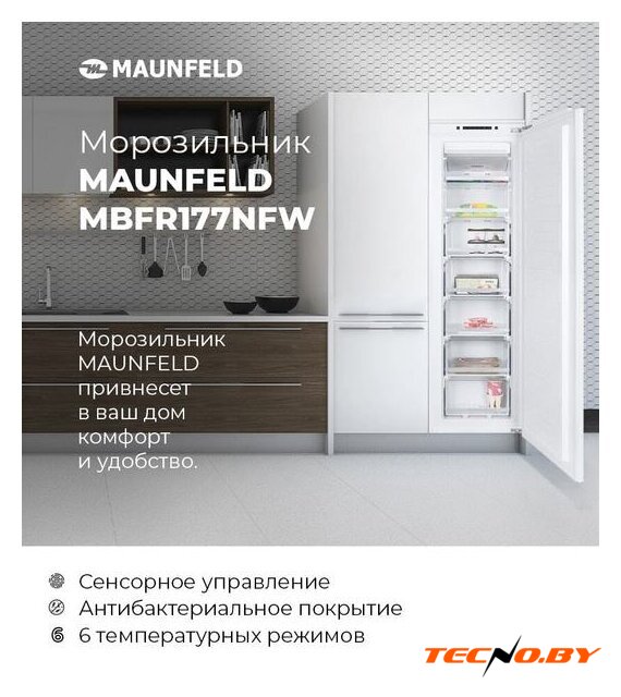 Морозильник MAUNFELD MBFR177NFW представлен в элегантном белом цвете, идеально подходящем для любого интерьера. Этот встраиваемый морозильник позволяет обеспечить эффективное хранение продуктов, не занимая лишнего пространства на кухне. Конструкция side by side и перенавешиваемые двери делают его идеальным выбором для любого дома.