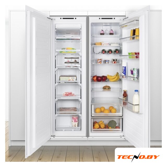 встраиваемый, No Frost (морозильная камера), электронное управление, полезный объём: 200 л, перенавешиваемые двери, 54x54.5x177 см, белый