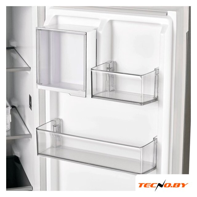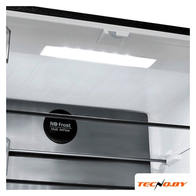отдельностоящий, полный No Frost, электронное управление, класс A++, полезный объём: 480 л (375 + 105 л), зона свежести, перенавешиваемые двери, нулевой зазор, лоток для яиц, 70x80x186 см, нержавеющая сталь