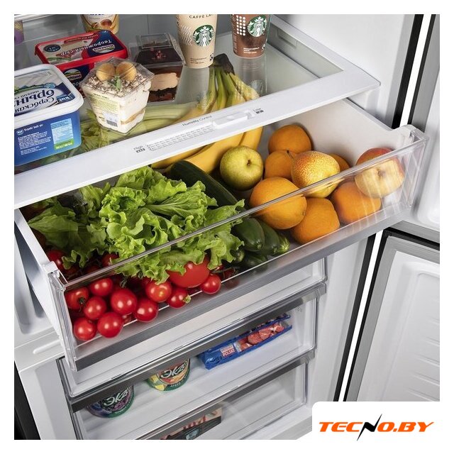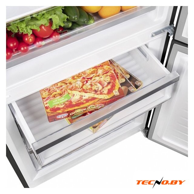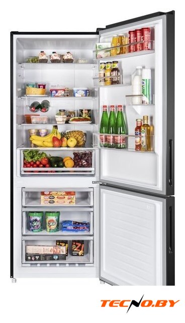 Одно из ключевых преимуществ данного холодильника - его огромный полезный объем, который составляет 432 литра! Из них 324 литра отведены под холодильную камеру и 108 литров - под морозильник. Четыре стеклянные полки и один ящик для овощей и фруктов позволяют удобно располагать продукты. Благодаря перенавешиваемым дверям, вы сможете адаптировать конструкцию под особенности вашего кухонного пространства.