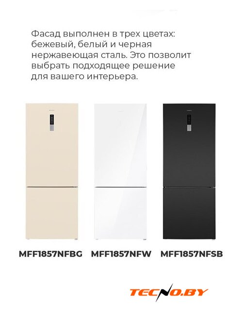 Холодильник MAUNFELD MFF1857NFSB дебютировал на рынке в 2020 году и с тех пор завоевал сердца многих пользователей. Его классический внешний вид выполнен в стильном цвете нержавеющей стали, который прекрасно вписывается в любой интерьер. Этот отдельностоящий агрегат с нижней морозильной камерой станет надежным помощником на вашей кухне.
