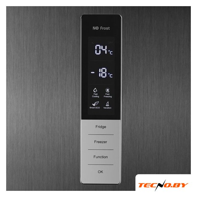 Электронное управление, расположенное снаружи, обеспечивает удобный доступ ко всем функциям, отображаемым на светодиодном дисплее. Здесь же доступны режимы суперзаморозки и суперохлаждения, которые пригодятся для быстрого охлаждения или заморозки продуктов. А если вы уезжаете в отпуск, просто активируйте режим "Отпуск". И не забудьте, данный холодильник уведомит вас о незакрытой двери.