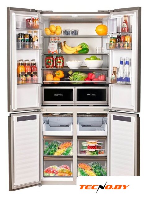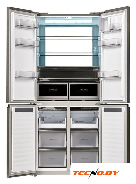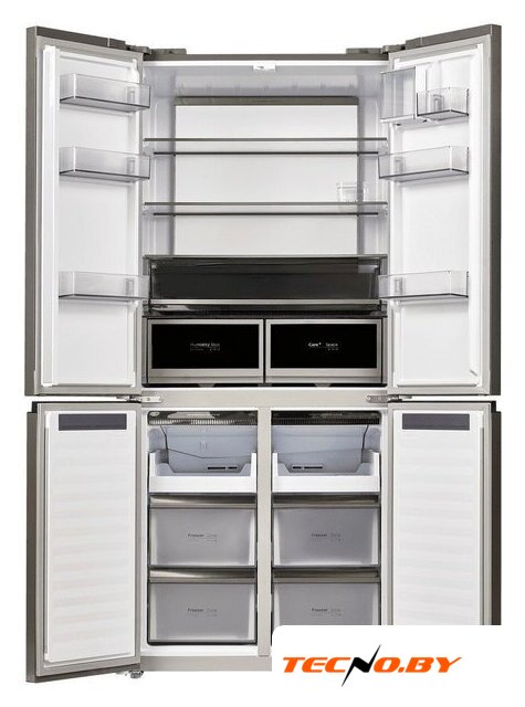 Модель MAUNFELD MFF190NFDSX отличается продуманной и удобной конструкцией. Благодаря четырем дверцам и объему в 537 литров, вы легко разместите все необходимые продукты. При этом, полезный объем составляет 498 литров. Холодильник включает в себя просторную холодильную камеру емкостью 330 литров и морозильную камеру объемом 168 литров. Вы оцените зону свежести с тремя ящиками, которые помогут сохранить продукты свежими дольше.