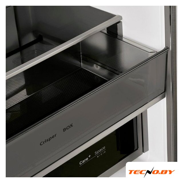 отдельностоящий, No Frost (морозильная камера), сенсорное управление, класс A+++, полезный объём: 349 л (255 + 94 л), инверторный компрессор, зона свежести, перенавешиваемые двери, складная полка, лоток для яиц, отделка: защита от отпечатков, 59.5x67.5x201.5 см, темная сталь