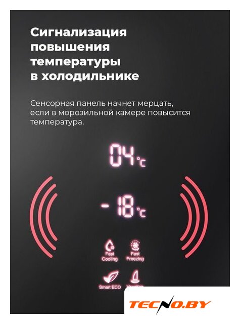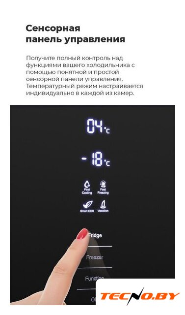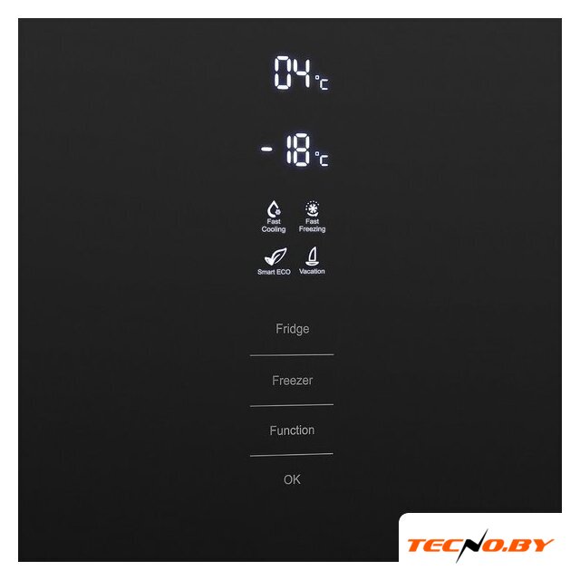 Электронное управление, расположенное снаружи, обеспечивает удобный доступ ко всем функциям холодильника. Светодиодный (LED) дисплей позволяет следить за заданной температурой, а такие режимы как суперзаморозка и суперохлаждение помогут быстро привести продукты в нужное состояние. Доступны режимы ECO и отпуск, а также сигнал открытой двери для дополнительной безопасности.