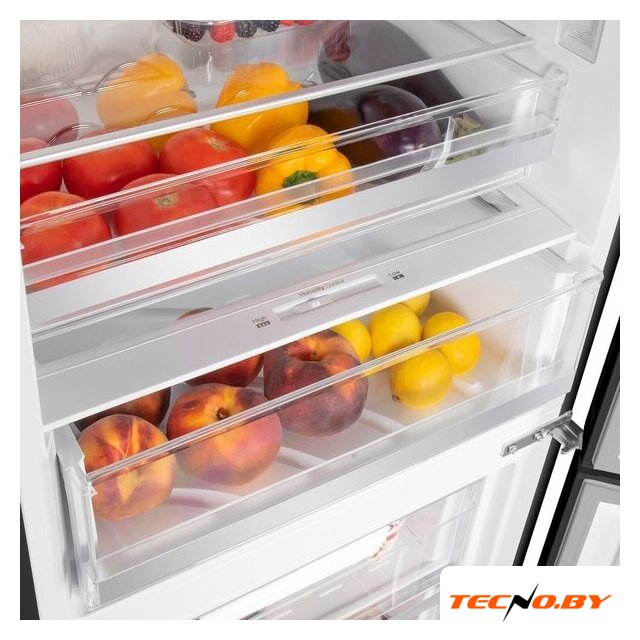 отдельностоящий, полный No Frost, механическое управление, класс A++, инверторный компрессор, перенавешиваемые двери, лоток для яиц, отделка: стекло, 60x65x190 см, черный