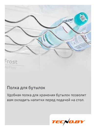 отдельностоящий, No Frost (морозильная камера), электронное управление, класс A, полезный объём: 319 л (225 + 94 л), инверторный компрессор, перенавешиваемые двери, подставка-лоток для бутылок, лоток для яиц, 59.7x67.5x185.5 см, серебристый