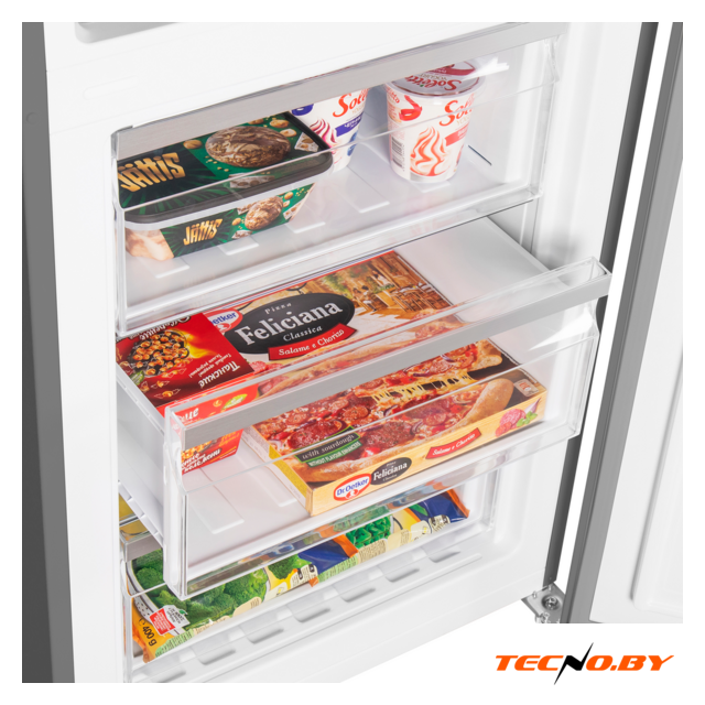 Система полного No Frost избавляет вас от необходимости размораживать холодильник вручную, а функции суперзаморозки и суперохлаждения позволяют быстро снизить температуру для свежеуложенных продуктов. Морозильная камера отличается высокой производительностью, замораживая до 4.5 кг продуктов в сутки, что делает ее идеальным выбором для больших семей.