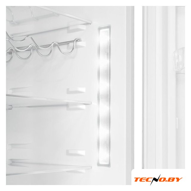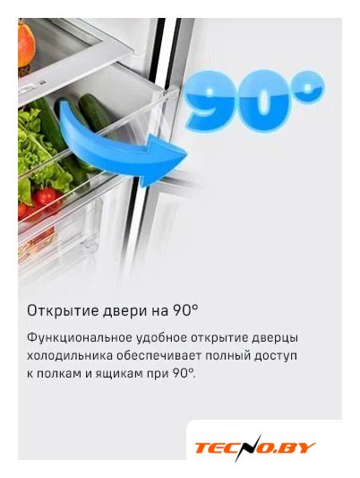Общий объем холодильного отделения составляет 271 литр, включая 6 дверных балконов и 4 стеклянные полки. Внутри предусмотрены регулируемая по влажности зона для овощей и фруктов, полка для вина и лоток для яиц. Все элементы конструкции обеспечивают гибкость в организации пространства внутри прибора.