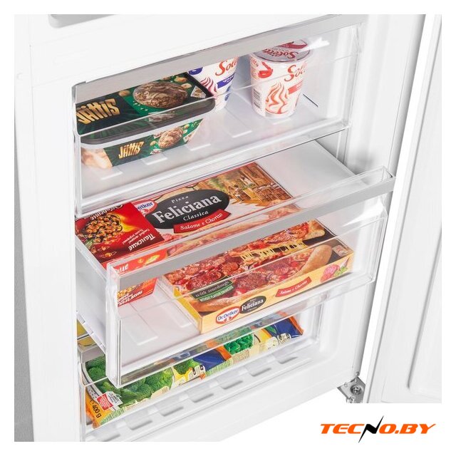 Морозильная камера предоставляет 106 литров общего объема хранения и может замораживать до 4.5 кг продуктов в сутки. Отделение, состоящее из трех отдельных ящиков, позволяет легко организовать продукты и получить к ним быстрый доступ. Генератор льда отсутствует, но для многочисленных замороженных запасов его мощности будет достаточно.