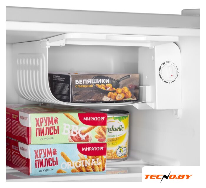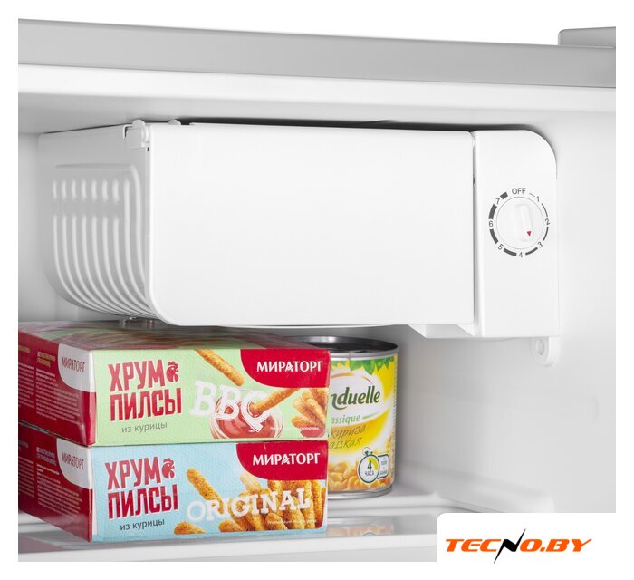Механическое управление расположено внутри холодильника, обеспечивая легкий доступ для настройки температуры. Несмотря на отсутствие дисплея и индикаторов температуры, управление остается интуитивно понятным, что делает его идеальным выбором для пользователей, ценящих простоту и надежность.