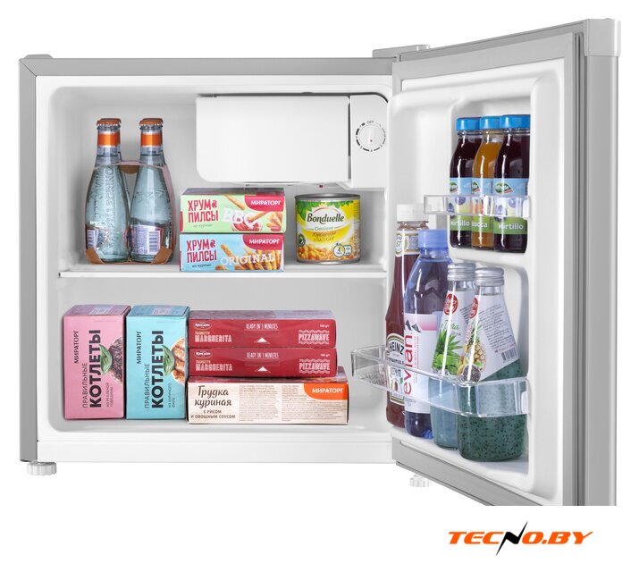 отдельностоящий, без No Frost, механическое управление, класс A+, полезный объём: 59 л, перенавешиваемые двери, 50x48x52.5 см, серебристый
