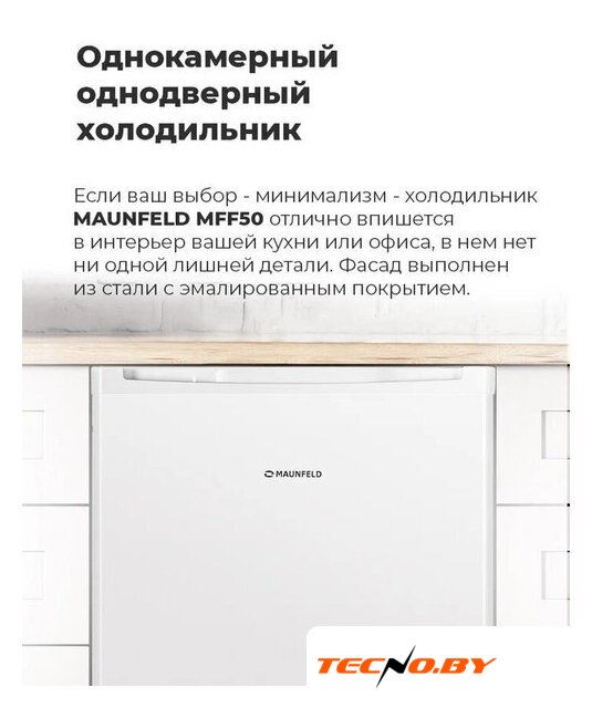 Представляем вам однокамерный холодильник MAUNFELD MFF50W, выпущенный на рынок в 2020 году. Этот компактный, но функциональный холодильник станет незаменимым помощником на вашей кухне или в офисе. Исполнение отдельностоящее, а элегантный белый цвет идеально впишется в любой современный интерьер. Благодаря встроенным ручкам и перенавешиваемым дверям, холодильник отличает не только стильный дизайн, но и удобство использования.