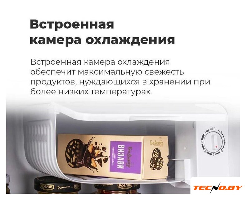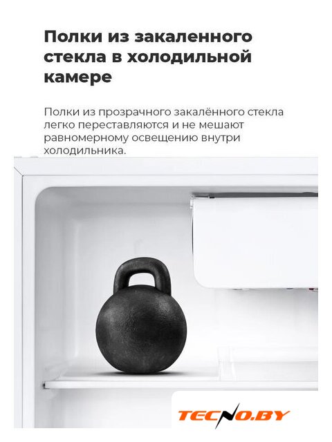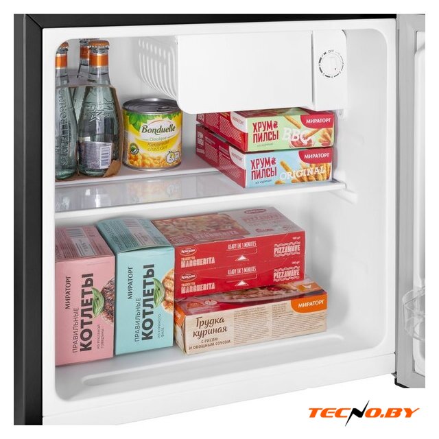 Внутреннее устройство холодильника продумано до мелочей. Несмотря на общий полезный объем в 46 литров, пространство организовано логично и удобно. Холодильная камера оснащена одной стеклянной полкой и двумя дверными балконами для хранения мелких предметов. Лоток для яиц — приятный бонус, помогающий рационально использовать пространство.