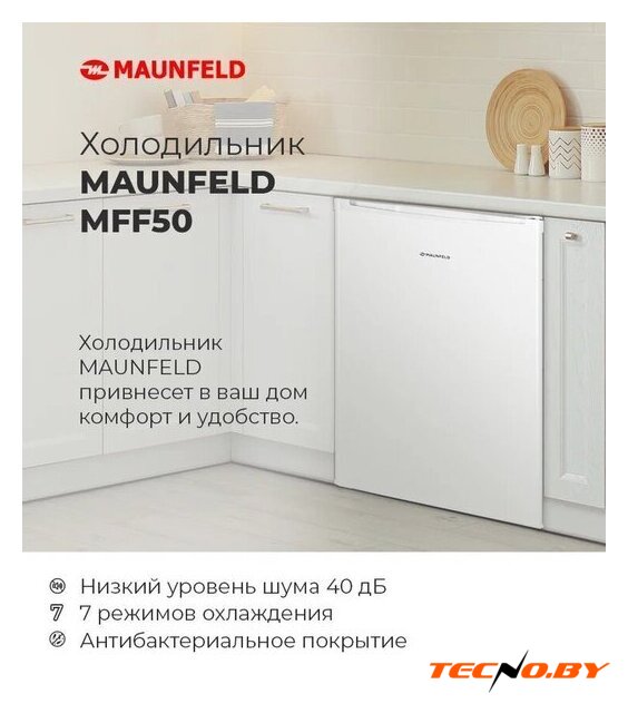 Несмотря на свои скромные размеры, MAUNFELD MFF50WD удивит вас своей производительностью. Холодильник оснащен одним компрессором, демонстрирующим оптимальное энергопотребление с классом энергоэффективности A+. Годовой расход электроэнергии составляет всего 105 кВт·ч, что делает его экономичным решением для ежедневного использования. Уровень шума не превышает 40 дБ, обеспечивая комфортную тишину в помещении.