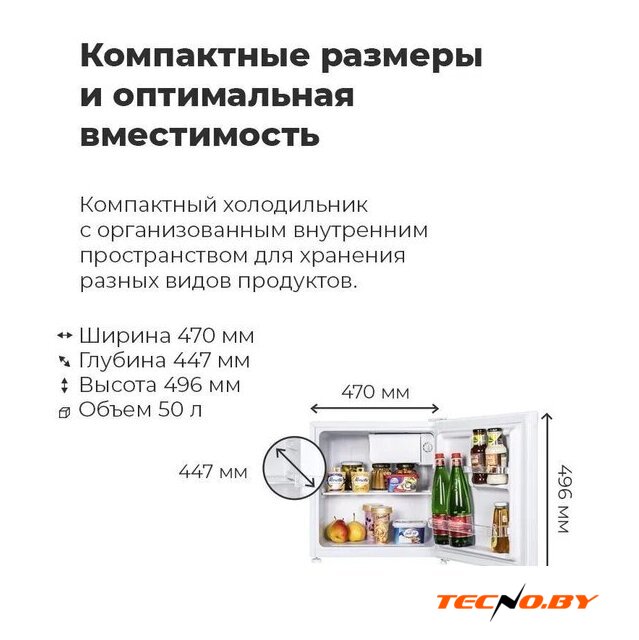 отдельностоящий, без No Frost, механическое управление, класс A+, полезный объём: 55 л, перенавешиваемые двери, 50x48x52.5 см, белый