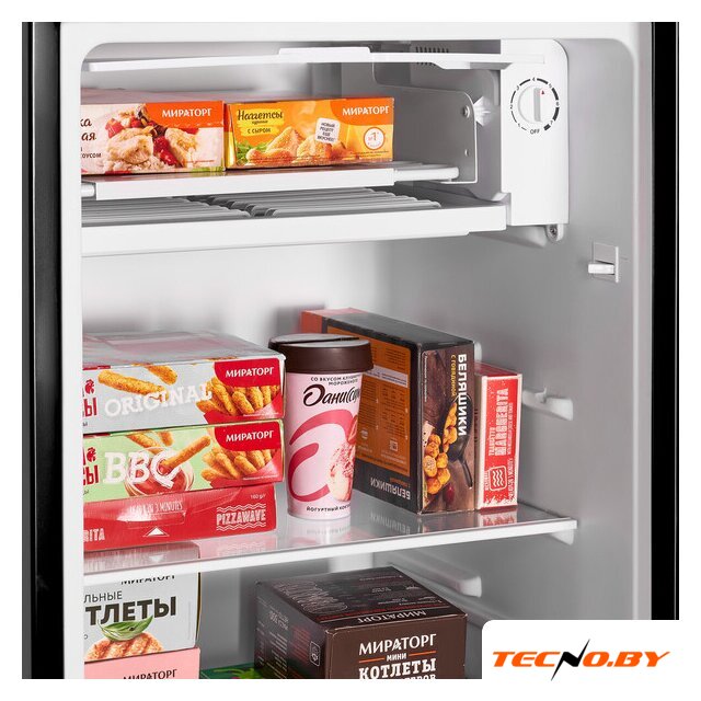 отдельностоящий, без No Frost, механическое управление, класс A+, полезный объём: 85 л, перенавешиваемые двери, лоток для яиц, 47.4x44.7x83.1 см, черный
