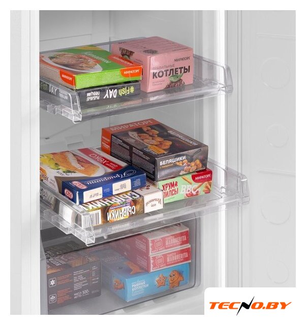 Общий объем морозильной камеры составляет 134 литра, при этом полезный объем достигает 122 литров. Эта вместительная модель позволяет хранить значительное количество продуктов. У нее есть 5 отделений, что дает возможность организовать пространство наиболее удобным для вас образом. Стоит отметить, что ручки морозильника встроены в корпус, а двери можно перенавешивать, что гарантирует гибкость в установке.