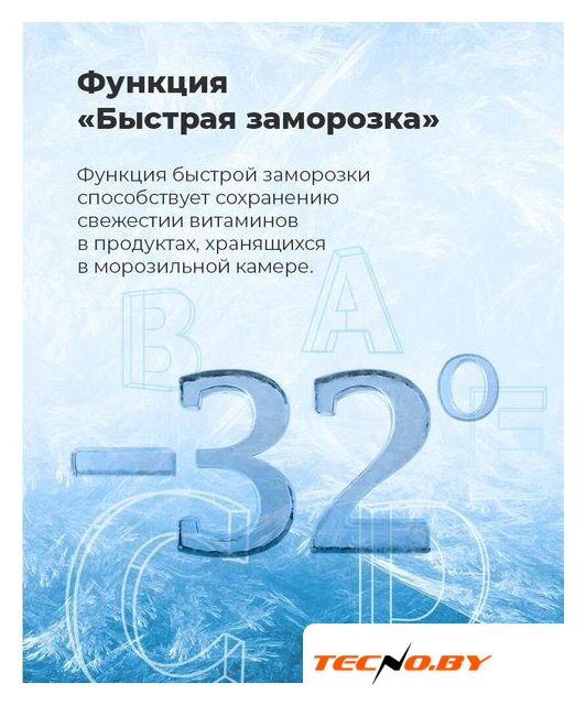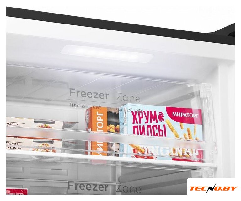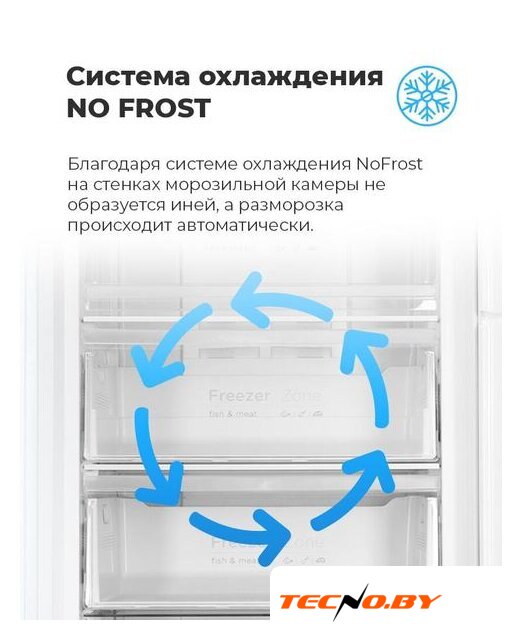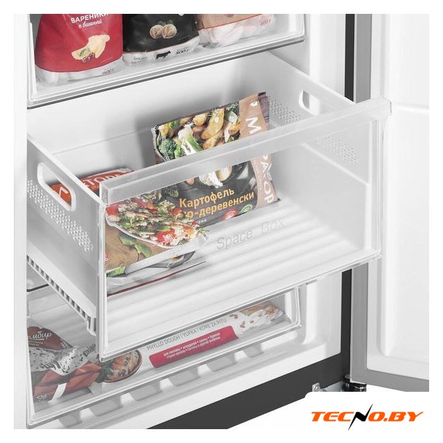 Морозильник оснащен современной системой No Frost, обеспечивающей оптимальные условия хранения продуктов без образования льда и инея. С полезным объемом в 380 литров, внутри располагается 7 отделений для систематизированного хранения разнообразных продуктов. Такой объем прекрасно подойдет для хранения больших запасов еды, что особенно актуально для любителей запасаться впрок.