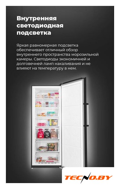Электронное управление позволяет легко настроить желаемую температуру. Морозильник оснащен LED-дисплеем для интуитивного контроля параметров. Дополнительные функции, такие как суперзаморозка, сигнал открытой двери и блокировка от детей, делают модель еще более удобной и безопасной в использовании 🔒.