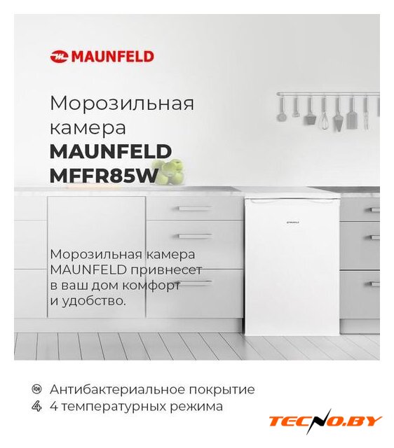 При мощности замораживания 5 кг/сутки морозильник MAUNFELD MFFR85W гарантирует быстроту и сохранение всех питательных веществ в ваших продуктах. Приятный уровень шума в 42 дБ предоставляет вам возможность наслаждаться тишиной в собственном доме. ⚡️